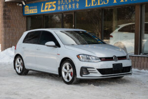 Volkswagen Golf GTI hatchback. Comes with 2 sets of tires (winter and summer)! Powered by a 2.0-litre turbocharged 4-cylinder engine producing 228 hp and 258 lb-ft of torque. Standard limited slip differential. 6-speed manual transmission. Front-wheel-drive. White silver metallic on black interior with Clark plaid seats.