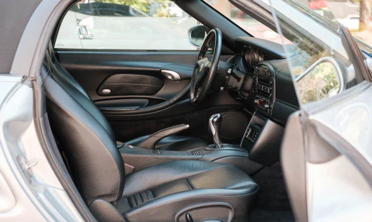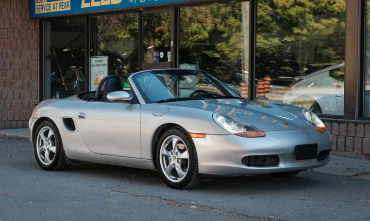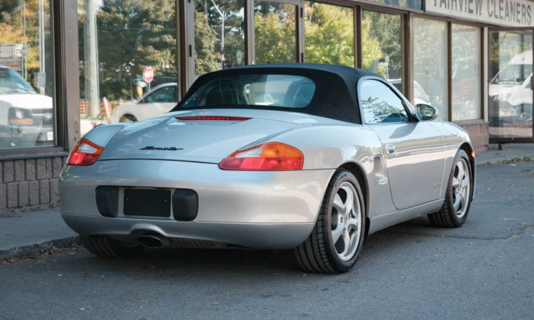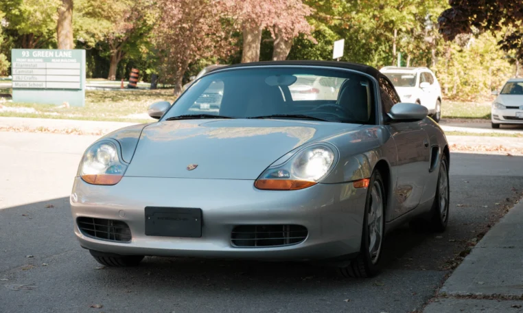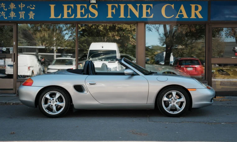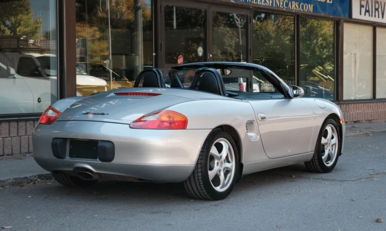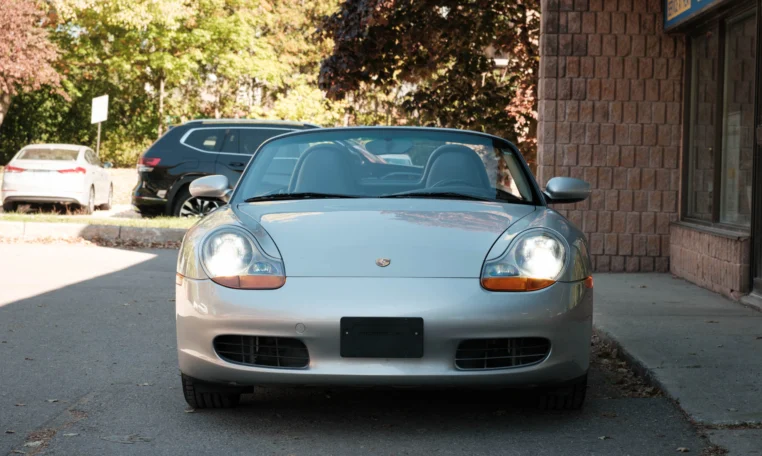 Convertible “986” generation Porsche Boxster! Local Ontario vehicle. Less than 57,000 kilometers from new! 5-speed manual transmission. Powered by a 2.7l 6-cylinder engine producing 217 hp and 192 lb-ft of torque. Recent service includes full synthetic oil change and new air/oil separator. Arctic silver metallic paint on black leather interior.