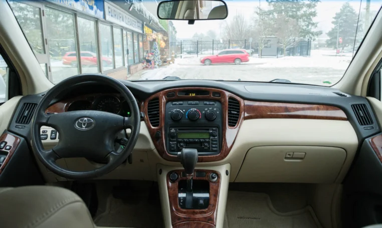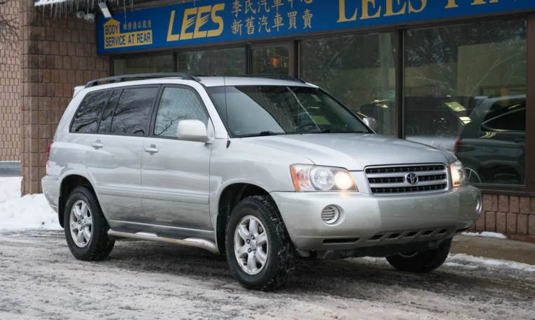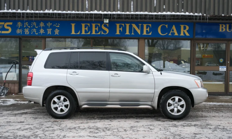 Super clean Toyota Highlander SUV with less than 104,000 kilometers from new! Powered by a 3.0l V6 engine producing 220 hp and 222 lb-ft of torque. Four-wheel-drive. Silver exterior paint on beige leather interior.