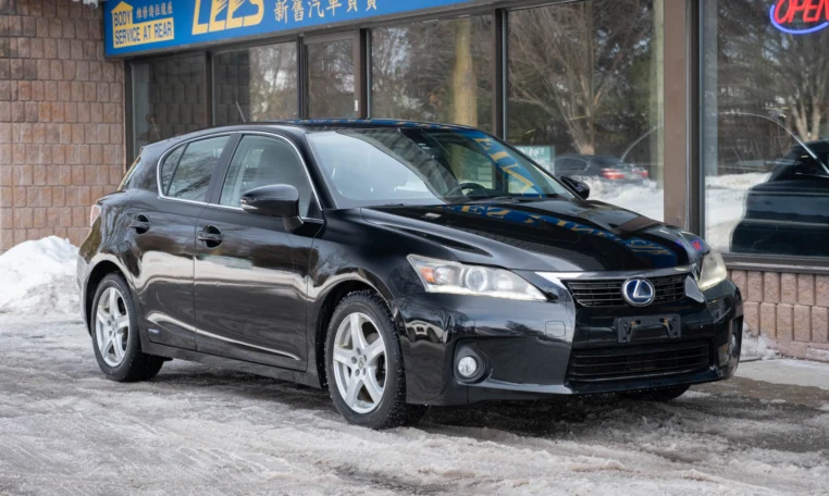 Lexus CT200h HYBRID hatchback with less than 150,000 kilometers from new! Comes with 2 sets of wheels and tires (summer and winter). Powered by a 1.8-litre 4-cylinder engine and a 60-kW electric motor producing 134 hp and 142 lb-ft of torque. Front-wheel-drive. Obsidian black paint on black leather interior.
