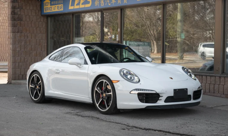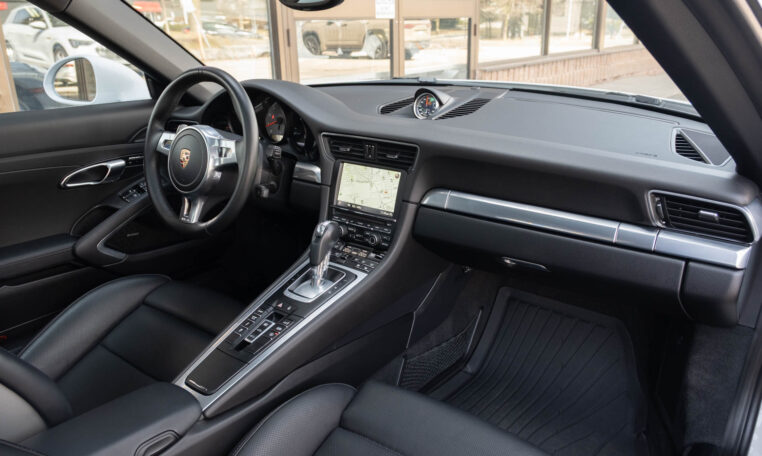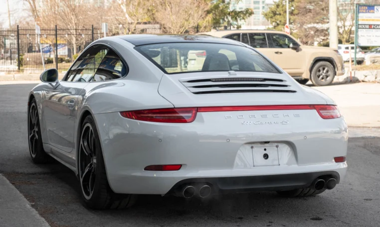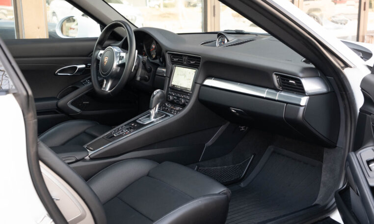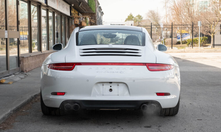 Porsche 911 Carrera 4S Coupe with less than 32,000 kilometers from new. Local Ontario vehicle. One of the last production years of the 991.1 generation and the naturally aspirated 3.8-litre 6-cylinder engine producing 400 hp and 325 lb-ft of torque. All-wheel-drive. 7-speed automatic PDK transmission. Carrara white metallic paint on black leather interior.