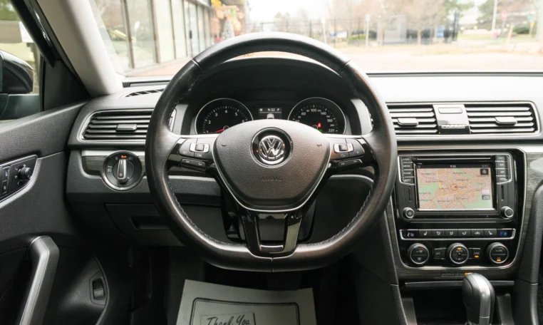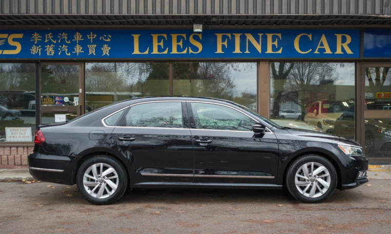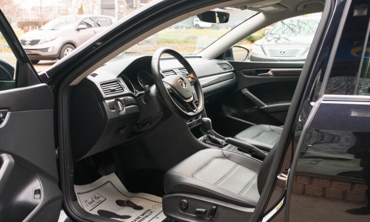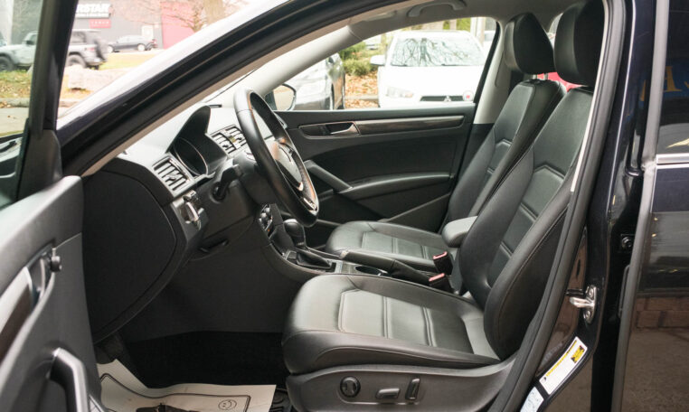 Volkswagen Passat sedan with less than 39,000 kilometers from new! Powered by a 2.0-litre turbocharged 4-cylinder engine producing 174 hp and 184 lb-ft of torque. Six-speed automatic Tiptronic transmission. Front-wheel-drive. Deep black pearl paint on Titan black interior.