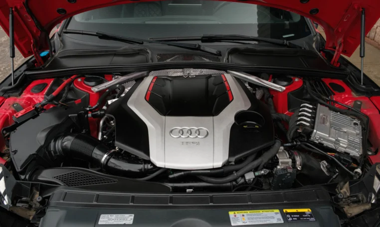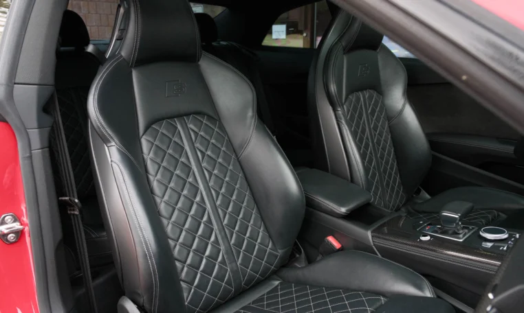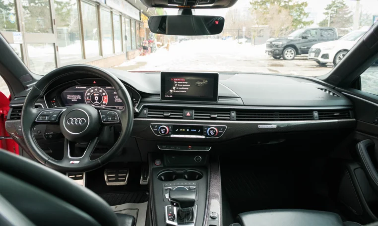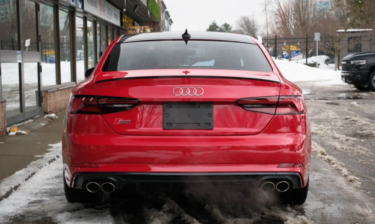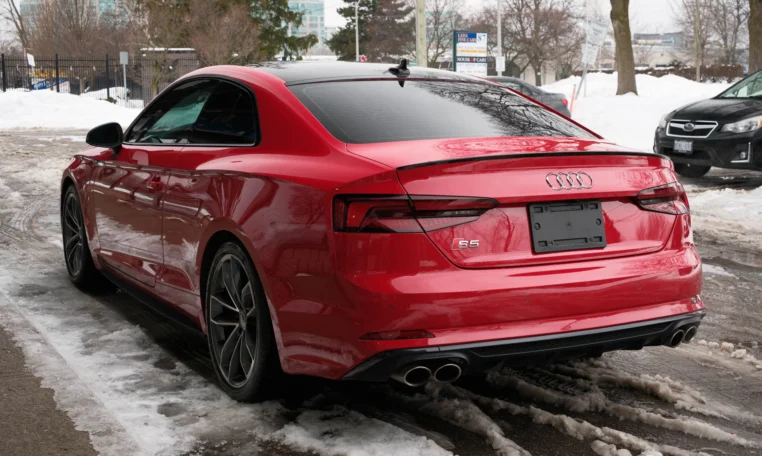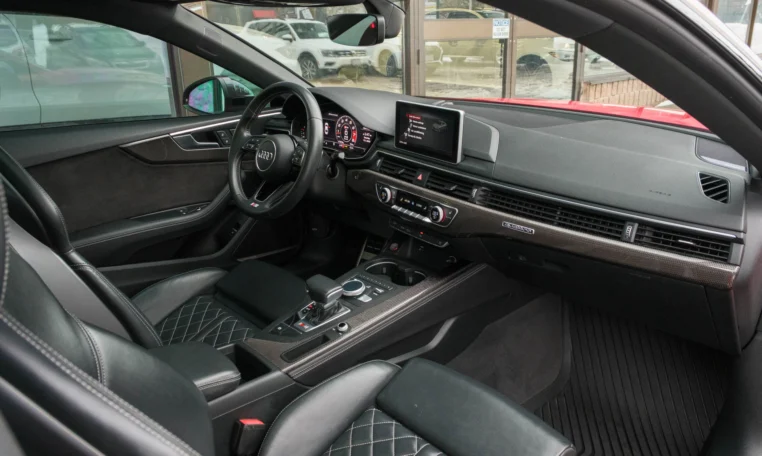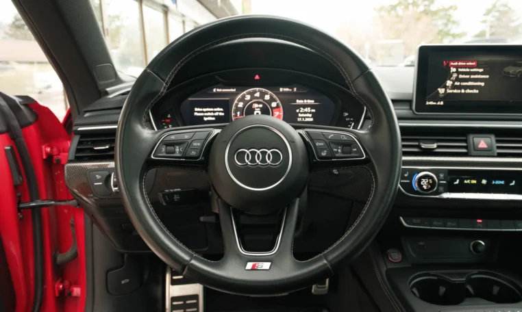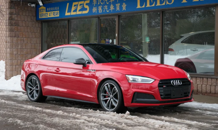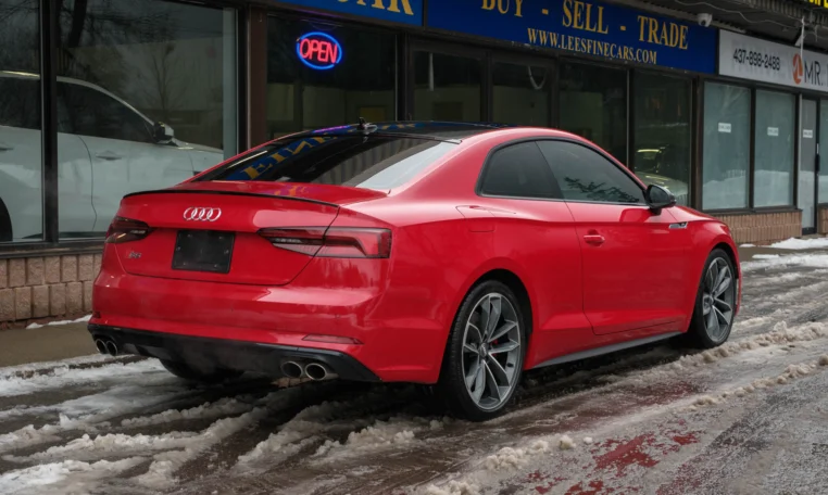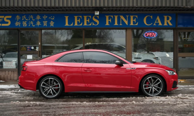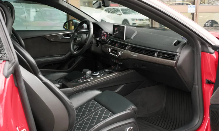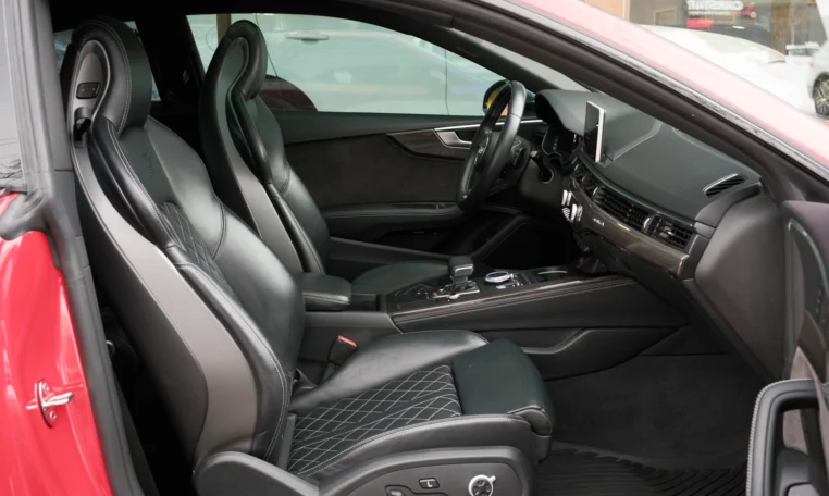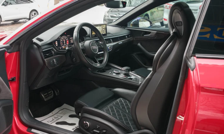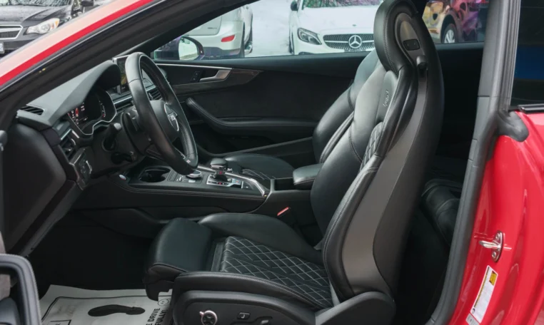 Rare top of the line Audi S5 2-door coupe. Powered by a turbocharged 3.0-litre V6 engine producing 349 hp and 369 lb-ft of torque. 8-speed automatic transmission. Quattro all-wheel-drive. Tango red metallic paint on black nappa leather interior.