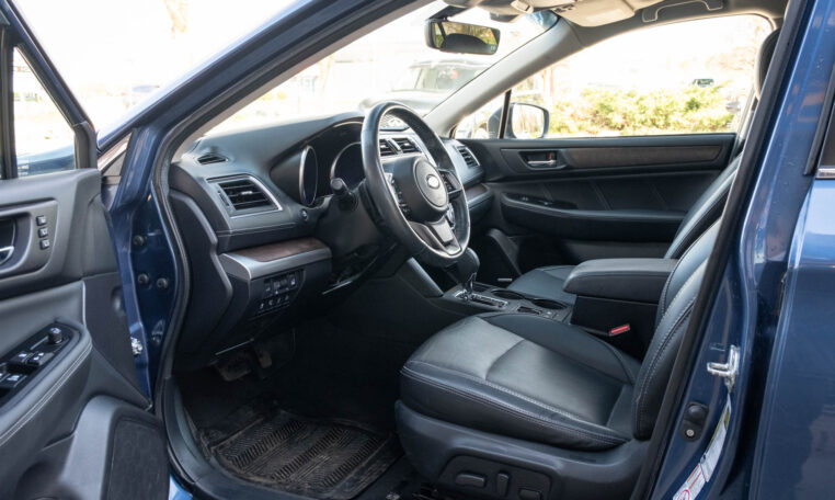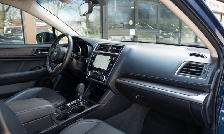 Subaru Outback wagon! Powered by a 3.6-litre 6-cylinder engine producing 256 hp and 247 lb-ft of torque. Full time symmetrical all-wheel-drive. Abyss Blue Pearl metallic paint on black leather interior.