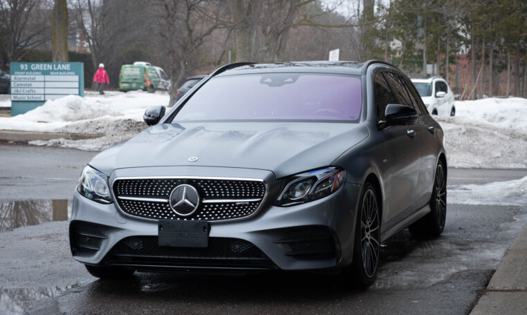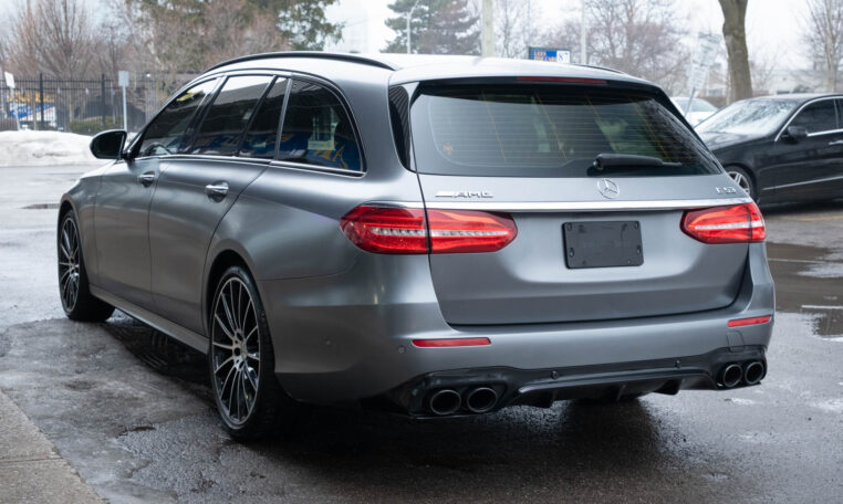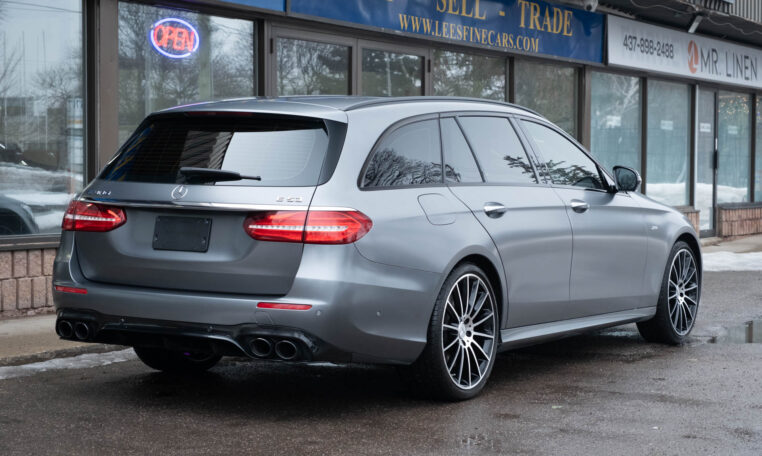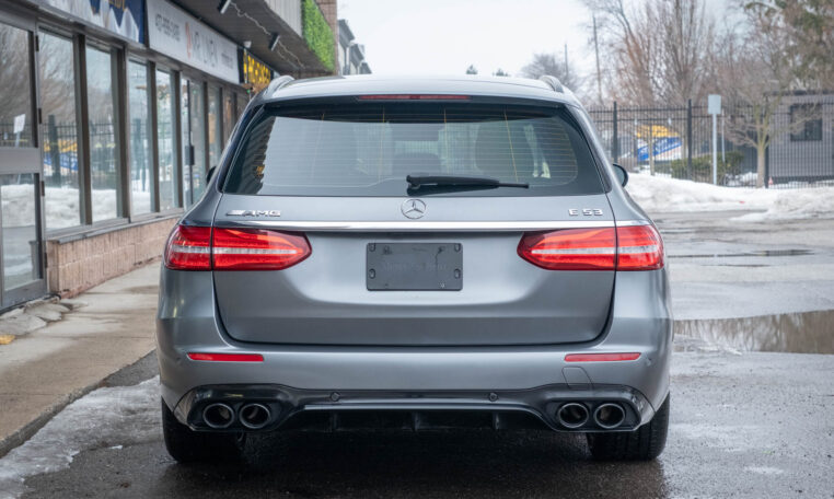 Rare E53 AMG wagon. Only 51,000 original kilometers from new! The E53 is powered by a 429 hp and 384 lb-ft torque 3.0l turbocharged 6-cylinder AMG tuned motor. 9-speed automatic transmission. 4MATIC all-wheel-drive. Combined with the wagon bodystyle this car is the perfect combination of luxury, performance, and practicality. Selenite grey metallic wrapped in full matte paint protection film with black leather interior.