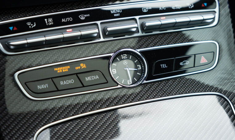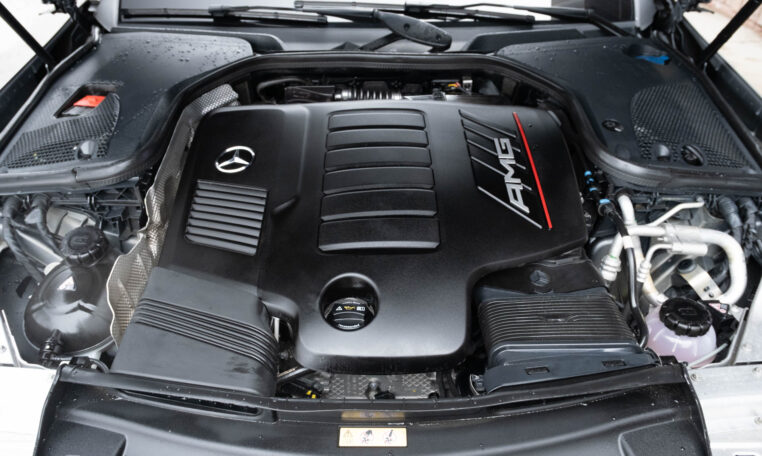 – AMG exterior night package (high gloss black front grille, front splitter, rear apron trim strip, and black chrome exhaust tips)