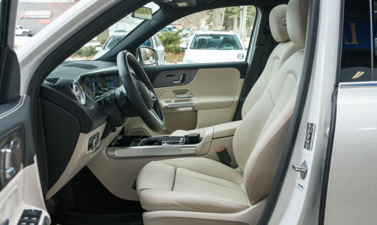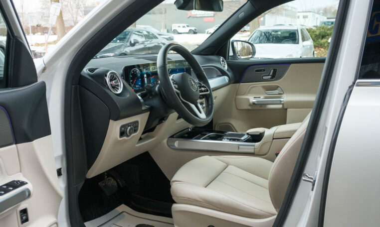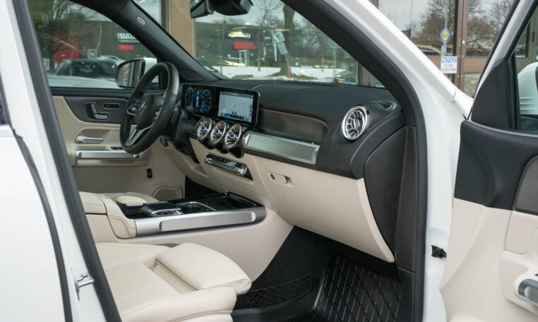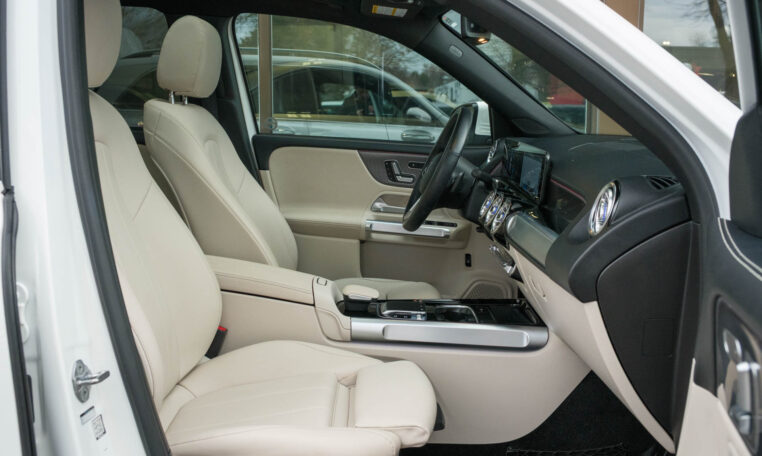 Rare Mercedes-Benz GLB250 SUV with 3rd row seating! Powered by a 2.0l turbocharged 4-cylinder engine producing 221 hp and 258 lb-ft of torque. 4MATIC all-wheel-drive. Polar white paint on macchiato beige interior.