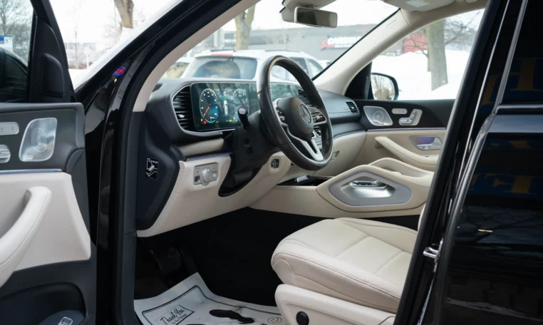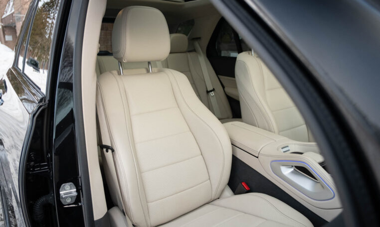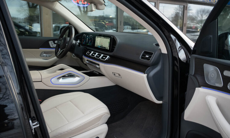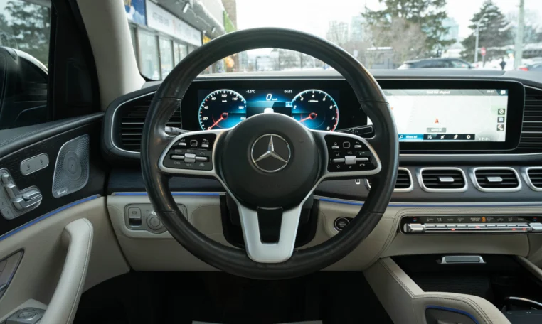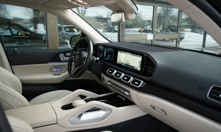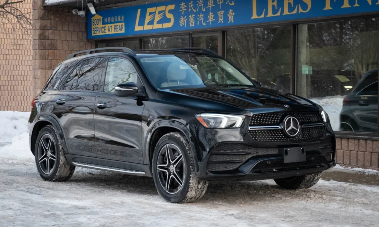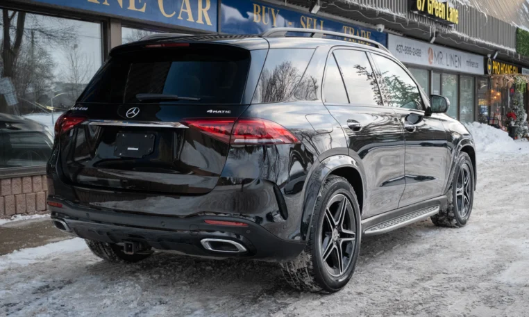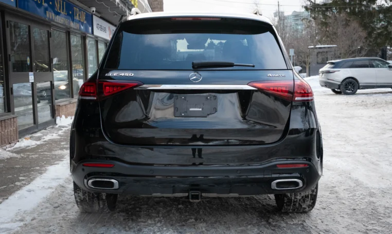 Mercedes GLE450 5-passenger SUV. Less than 40,000 kilometers from new! The 2020 GLE450 is powered by a 3.0l twin-turbo 6-cylinder mild-hybrid engine producing 362 hp and 369 lb-ft of torque. Obsidian black metallic paint on beige interior.
