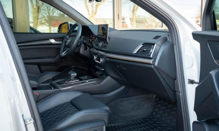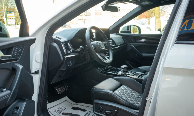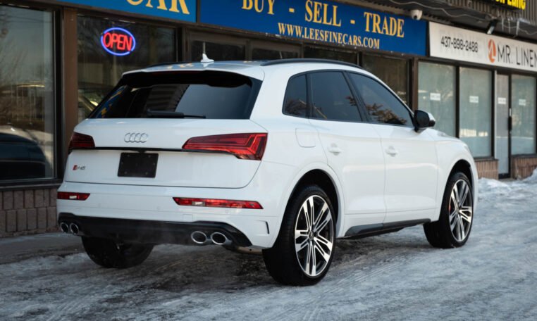 Audi SQ5 performance SUV with less than 15,000 kilometers from new! Powered by a 3.0l turbocharged V6 engine producing 354hp and 369 lb-ft of torque. Quattro all-wheel-drive. Glacier white metallic paint on black nappa leather interior.