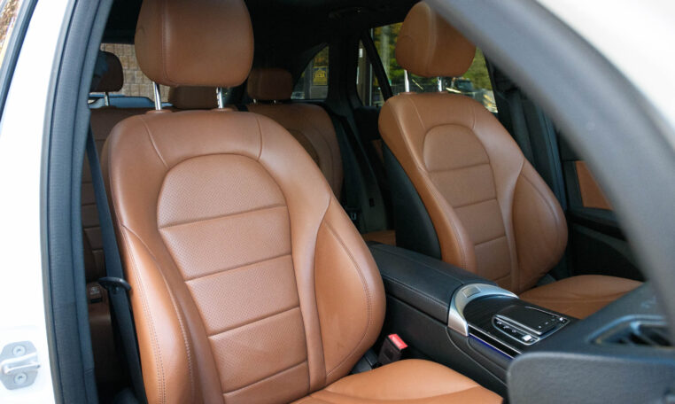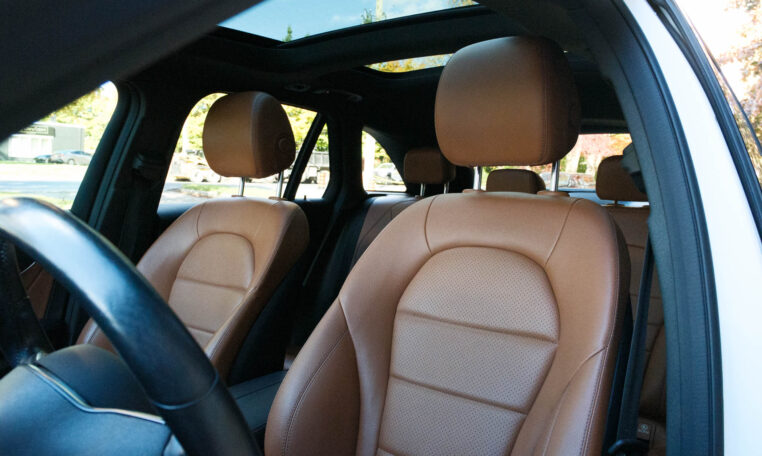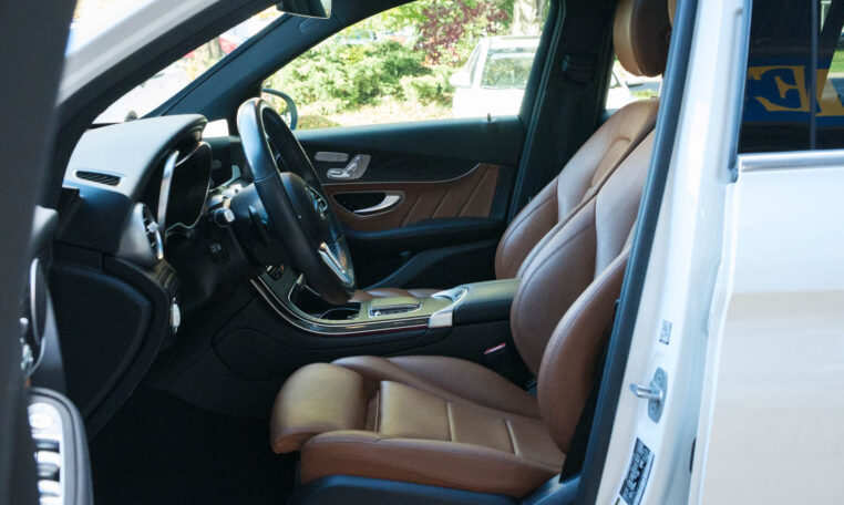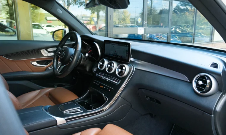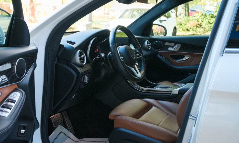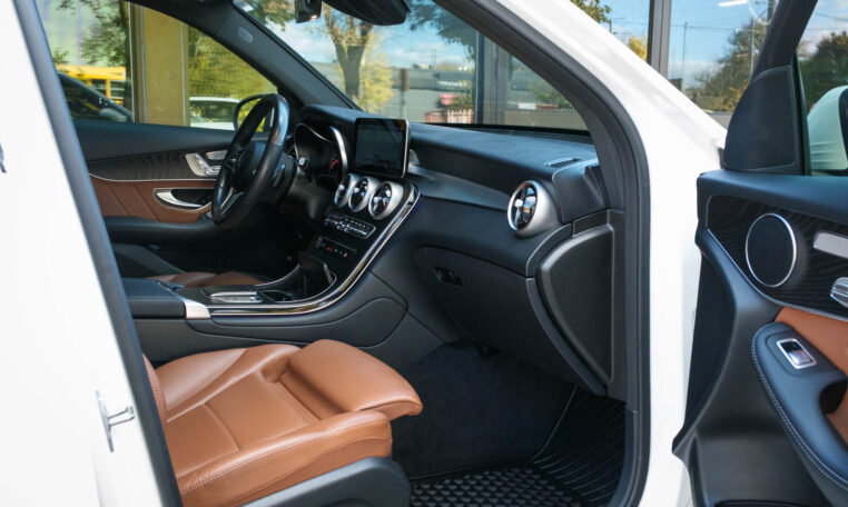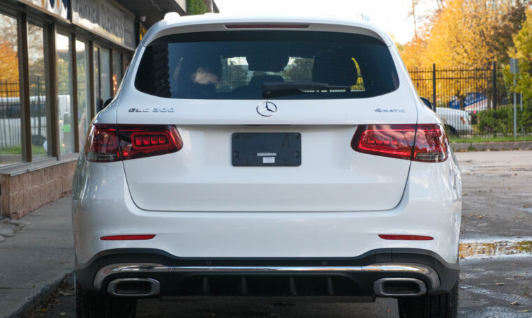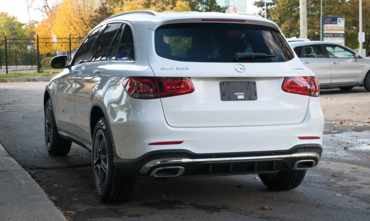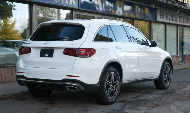 GLC300 SUV. 4 brand new all season tires! Powered by a 2.0l turbocharged 4-cylinder engine producing 255 hp and 273 lb-ft of torque. 4MATIC all-wheel-drive perfect for all weather. Less than 38,000 kilometers from new. White paint on brown interior. Loaded with lots of premium options.