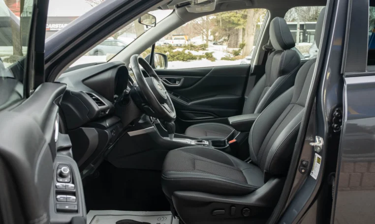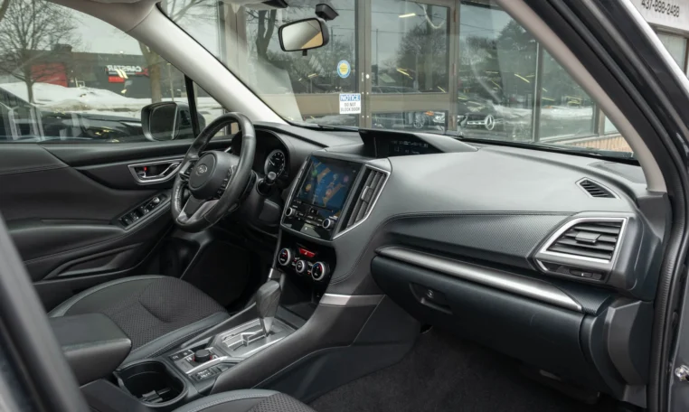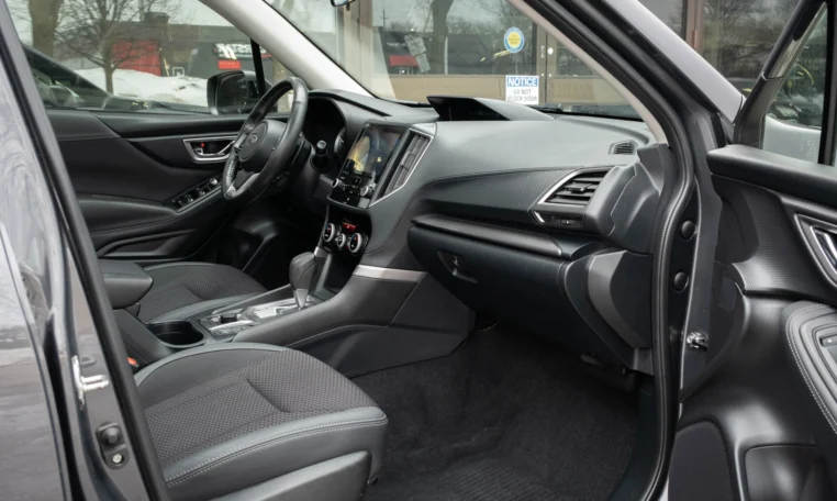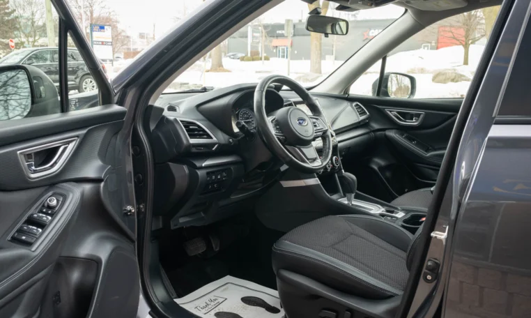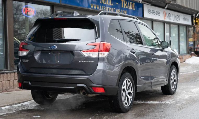 Subaru Forester SUV. Four brand new tires just installed! Powered by a 2.5-litre 4-cylinder engine producing 182 hp and 176 lb-ft of torque. Subaru Symmetrical full-time all-wheel-drive. Magnetite Grey Metallic paint on black premium cloth interior.