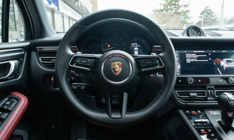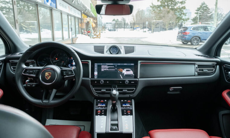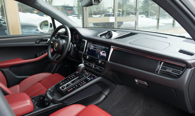 Very well optioned Porsche Macan SUV. Comes with 2 sets of tires (summer and winter) Powered by a 2.0-litre turbocharged 4-cylinder engine producing 261 hp and 295 lb-ft of torque. 7-speed automatic dual clutch PDK transmission with all-wheel-drive. Special Chalk exterior paint with two-tone leather black/bordeaux red interior.